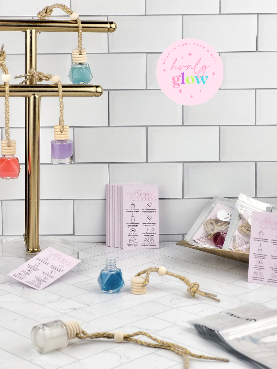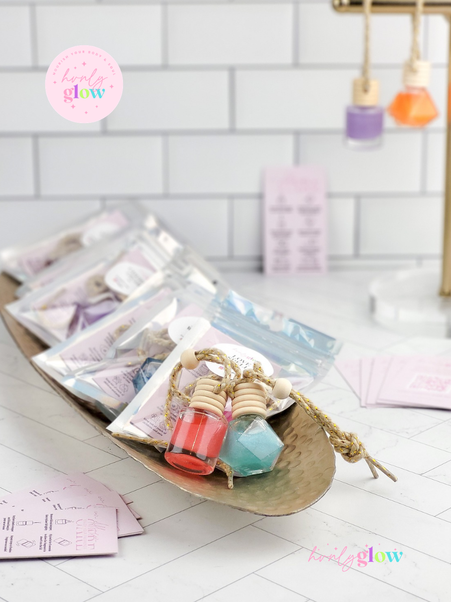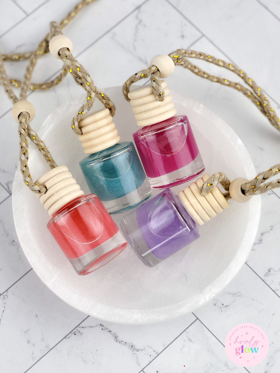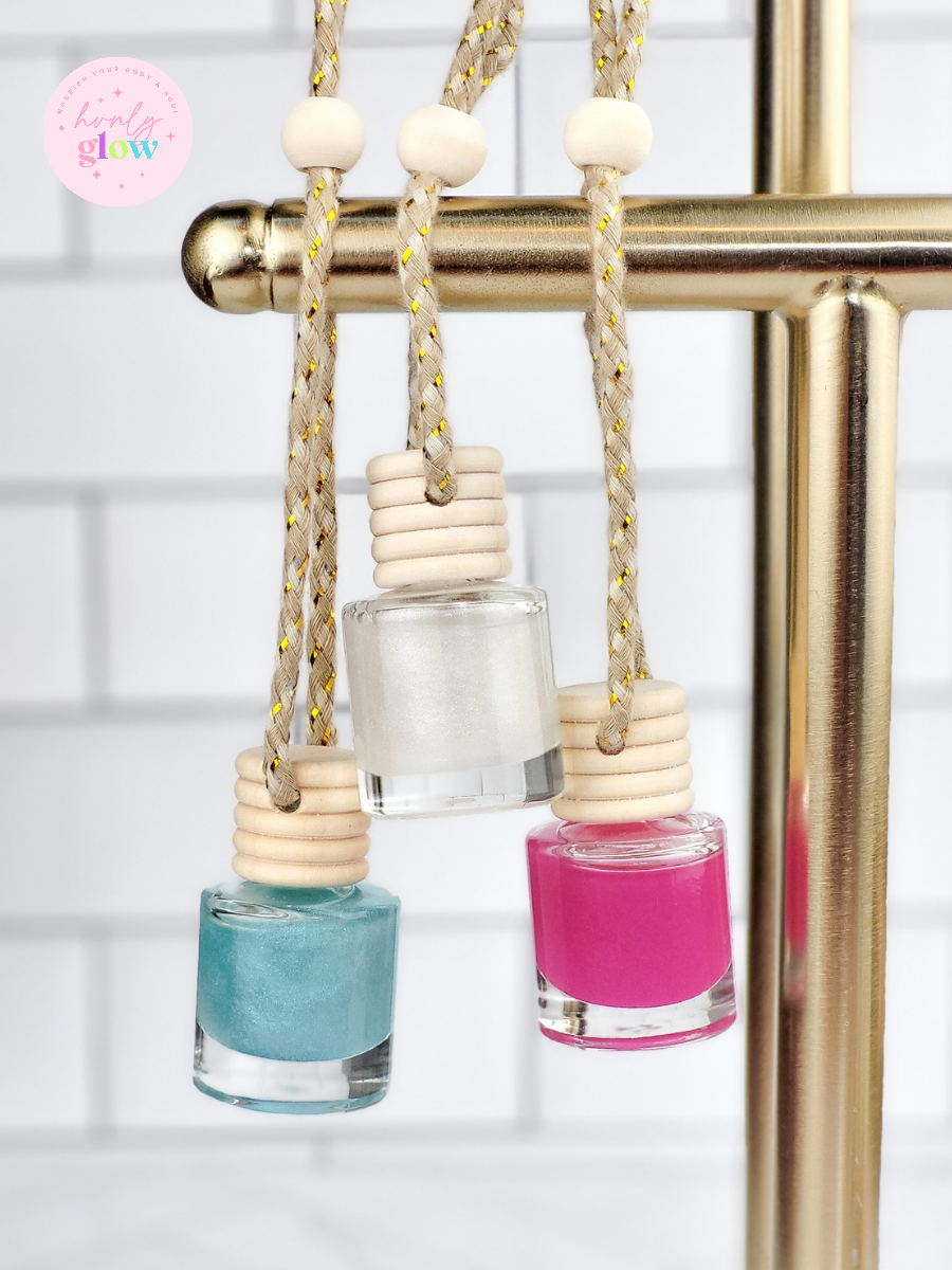 Simple and gorgeous car diffusers that are perfect to have your favorite scent on the go! Each bottle is filled with quality phthalate free fragrance and our signature shimmer and pop of color! Long lasting and the perfect car accessory!